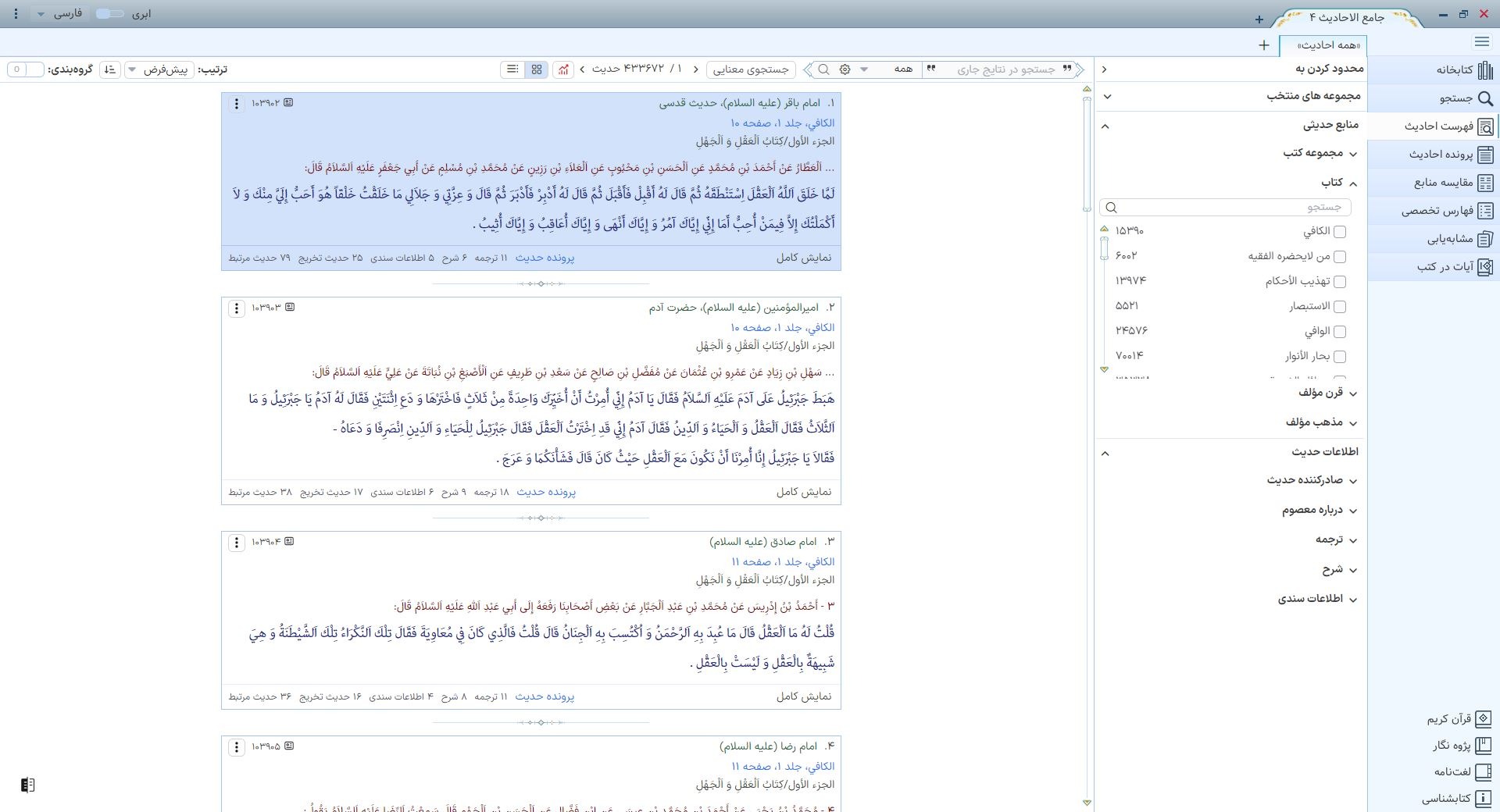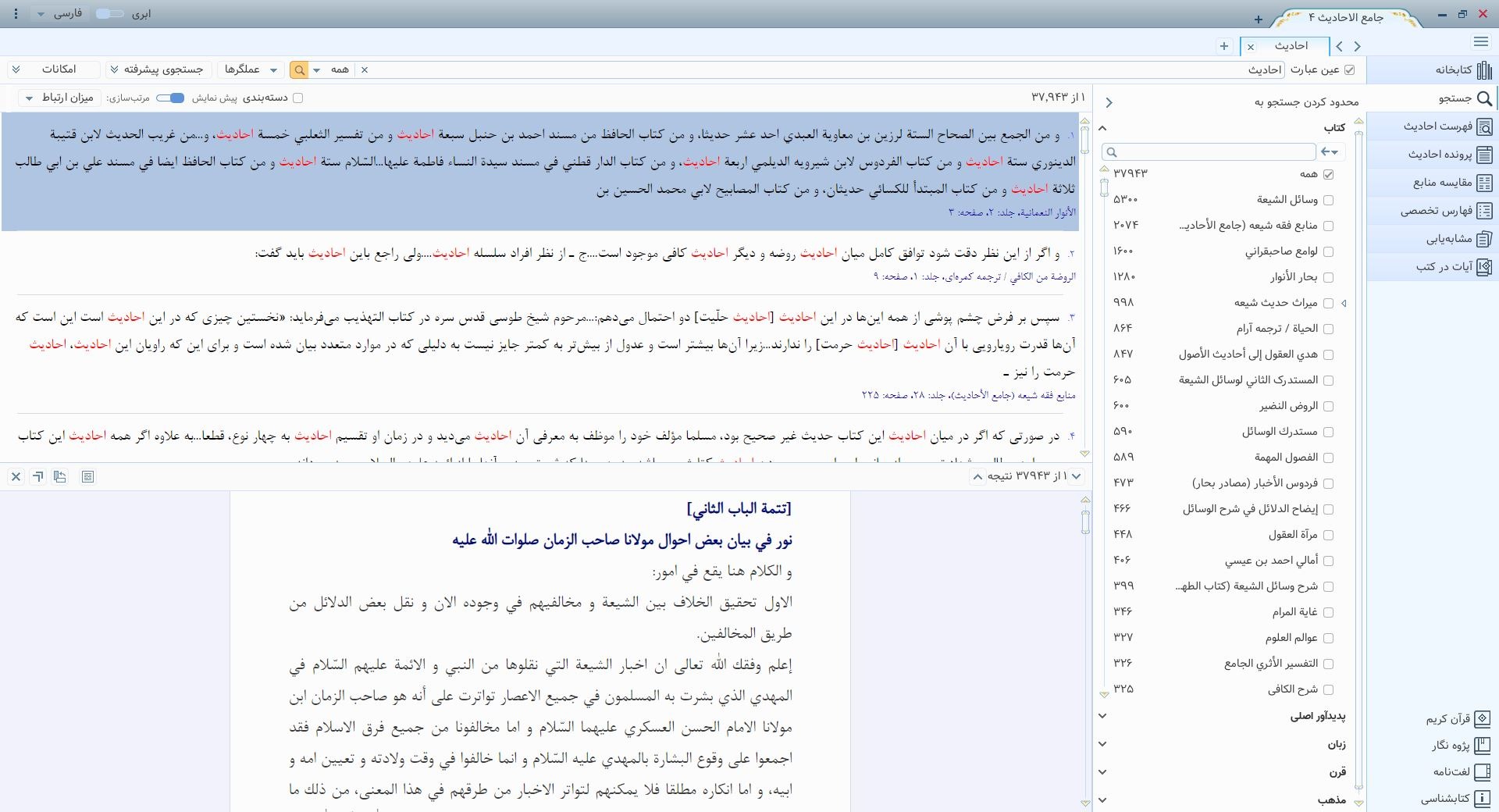 | | محتوا : | ارائه 742 عنوان کتاب و رساله در 1655 جلد از مهمترین منابع حدیثی شیعه به همراه ترجمه و شرح |