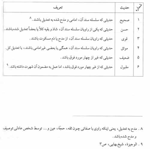 شيخ بهايى، حديث و خبر را از اين جهت (اسناد)، به شش دسته تقسيم مى كند: