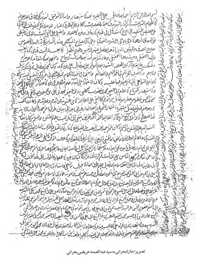 فليرو السيّد ـ أيّده اللّه تعالى ـ جميع ما سمع عليّ وصحّ عنده سماعي له أو إجازته إليّ بالطريق وغيره من الطرق ، مشترطا عليه ما شُرط عليّ في الإجازة من سلوك جادة الاحتياط الذي لا يضل سالكها ، وله أن يجيز لمن شاء ممّن يراه لها أهلاً .