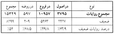 1. روشن است كه اهمّيت سند در موضوعات مختلف حديثى ، يكسان نيست. ارزيابى هاى سندى در موضوعات فقهى ـ كه جنبه تعبّدى داشته و با حلال و حرام الهى ، سروكار دارند ـ ، نسبت به موضوعات اعتقادى و اخلاقى ـ كه بخشى از آنها صرفا ارشاد به احكام عقلى است ـ ، نقش مهم ترى را ايفا مى كند. آمارهاى فوق نيز نشان دهنده آن است كه ميزان روايات معتبر(اعم از : صحيح، كالصحيح، موثّق، كالموثّق، حسن، كالحسن، قوى و معتبر) در بخش فروع الكافى ـ كه به مباحث فقهى اختصاص دارد ـ ، با رقم 1/49% ، بيش از دو بخش ديگرِ اصول و روضه است.