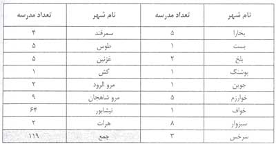 تعداد مدارس شهرهاي خراسان (قرن چهارم تا هفتم هجري)