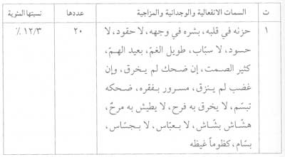 وقد أراد الإمام عليه السلام القول إنّ حاجات ودوافع وغرائز المؤمن الاجتماعية هي من يجعله في قمّة هرم السمات الإنسانية التي يرضاها اللّه ـ عزّوجلّ ـ من عباده. والجدول (3) يوضّح عدد السمات الاجتماعية ونسبتها المئوية.