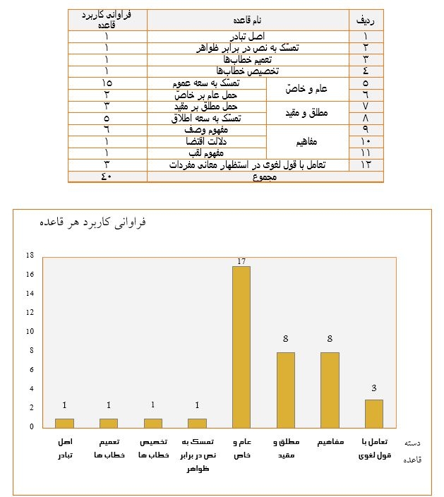 جدول فراوانی قواعد اصولی مورد استفاده در سِرُّ الإسراء