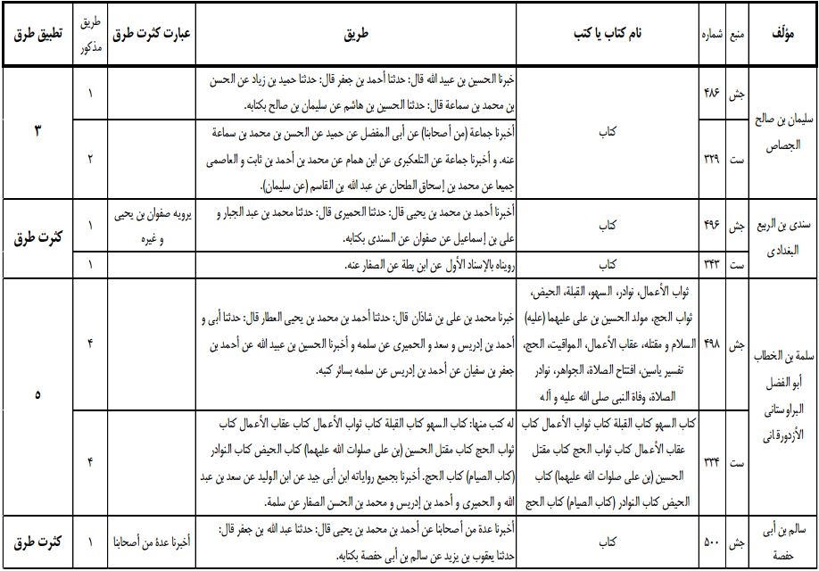 پس از بررسی نمونه آماری از کتب اصحاب، در نتیجه، تعدد طرق برای بیش از نیمی از